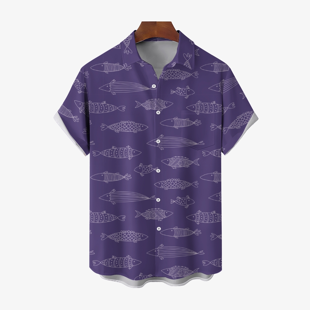 Men's Geometric Fish Print Hawaiian Casual Short Sleeve Shirt