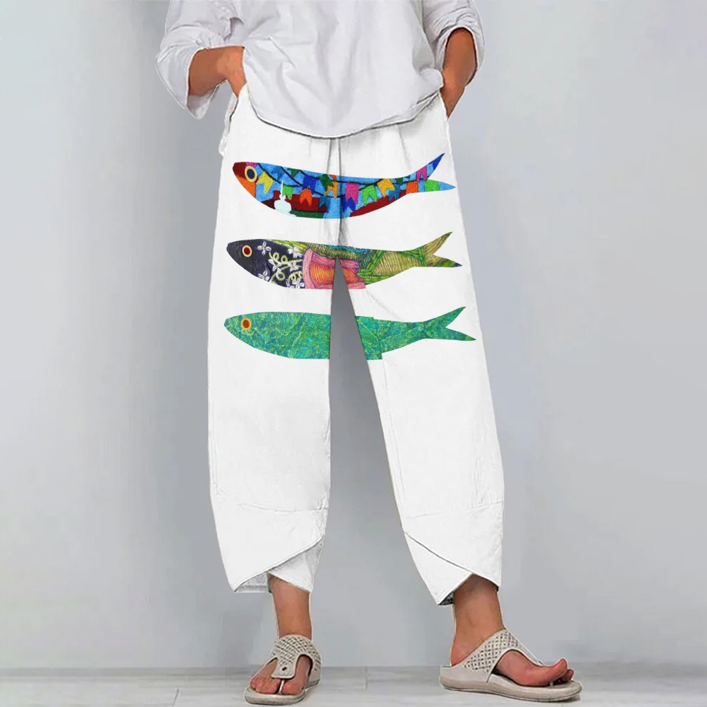 Women's Wide Leg Casual Colorful Cartoon Fish Printed Pants