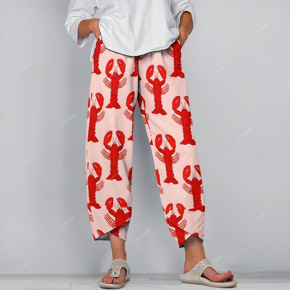 Women's Wide Leg Casual Crab Starfish Lobster Printed Pants