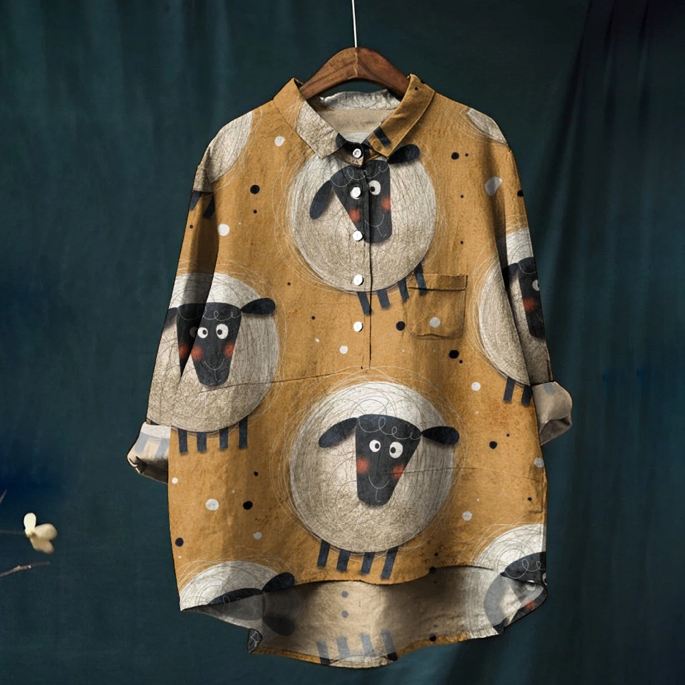 Women's Cartoon Lamb Printed Casual Shirt
