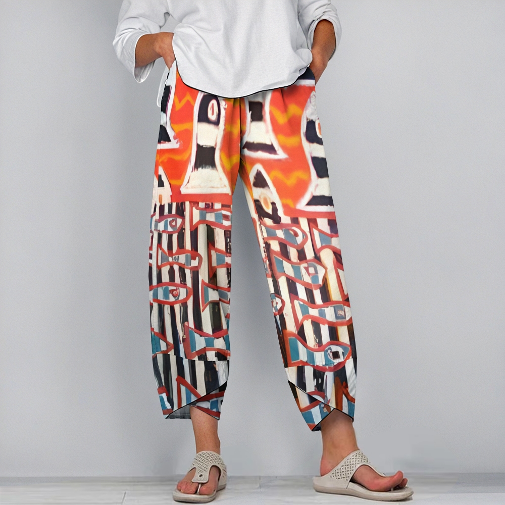 Women's Casual Vintage Geometric Fish Printed Pants