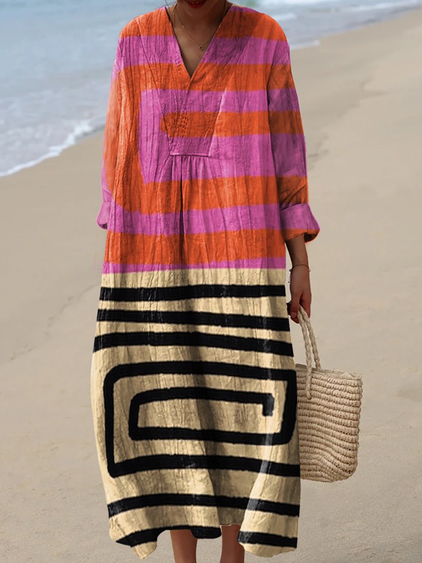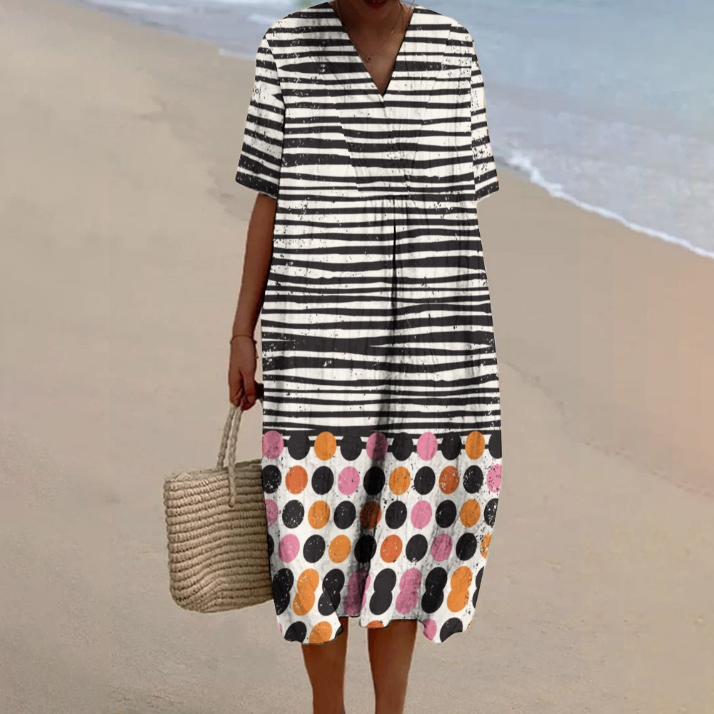 Women's Abstract Stripe Polka Dot Printed Flowy Dress