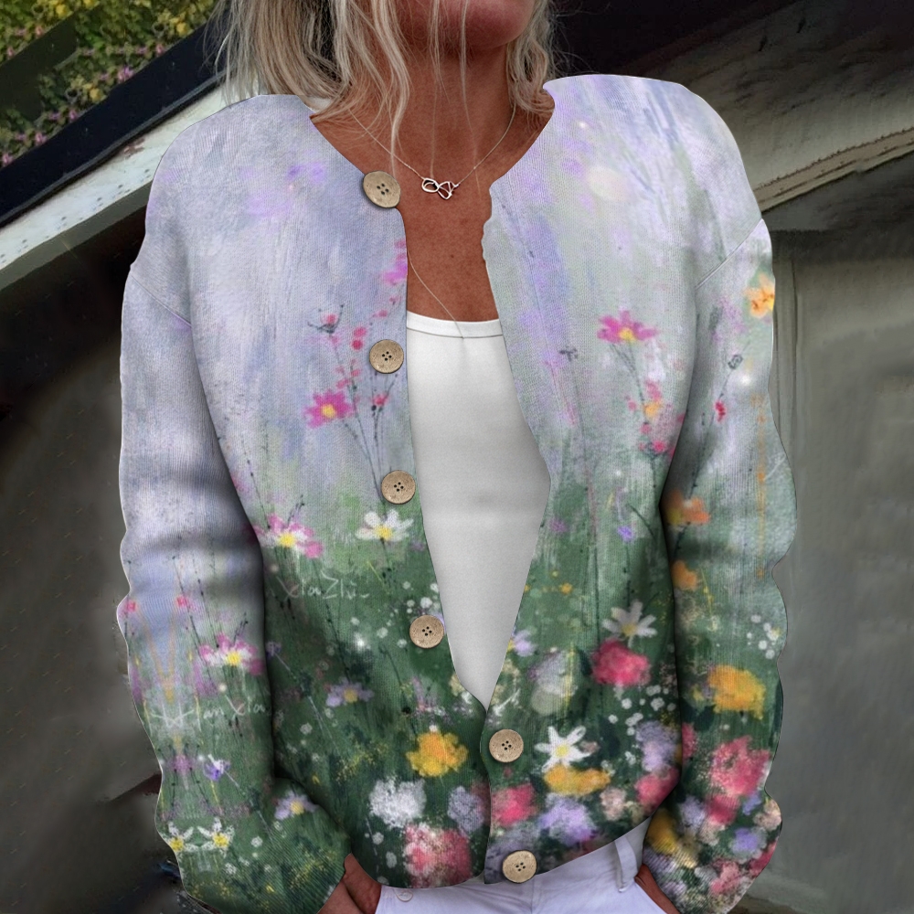 Women's Flower Printed Casual Cardigan Sweater