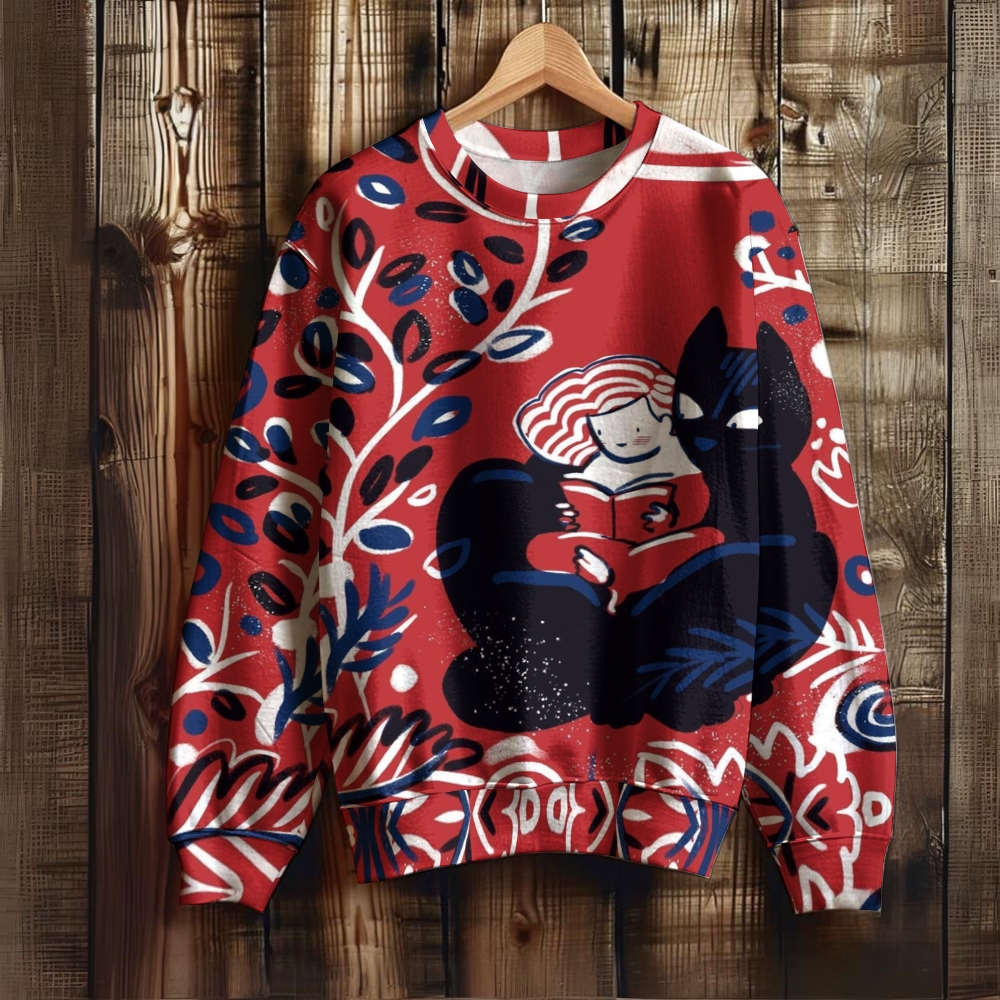 Unisex Black Cat Printed Sweatshirt