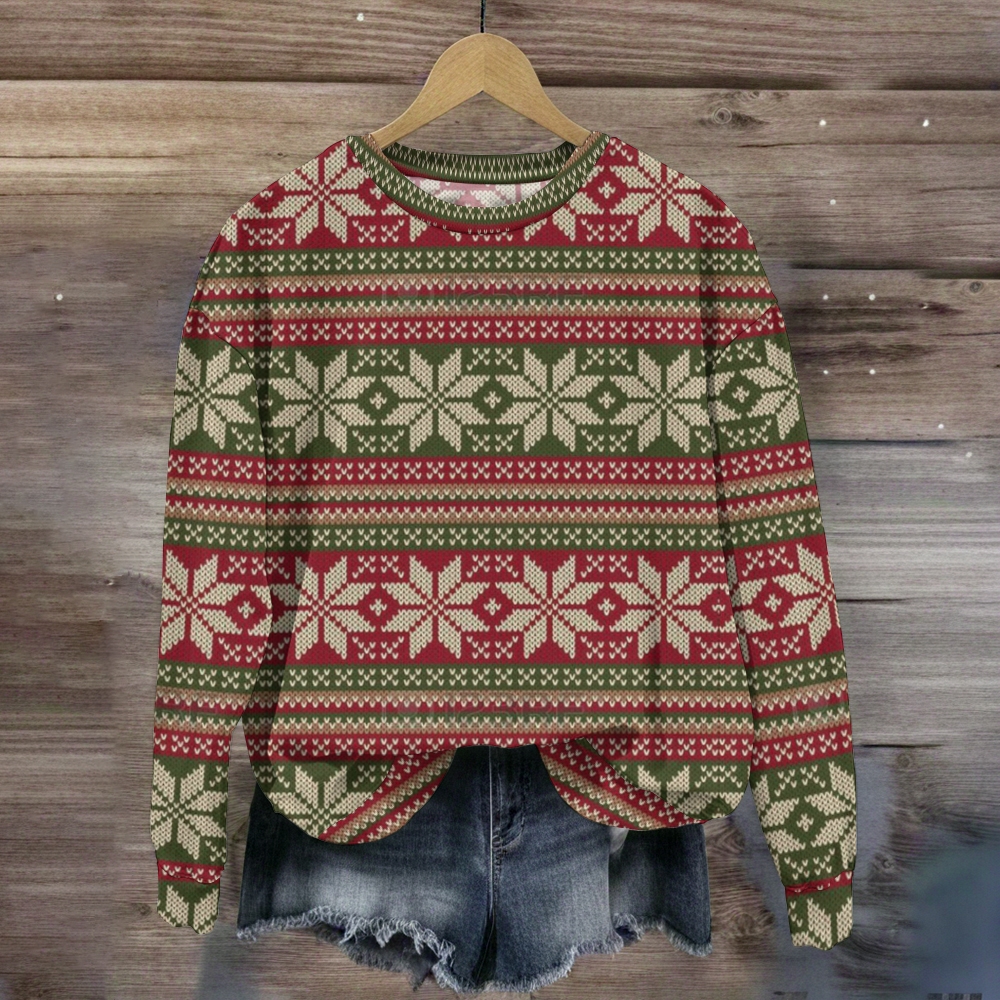 Casual Christmas Snowflake Color Block Knit Pullover Sweater