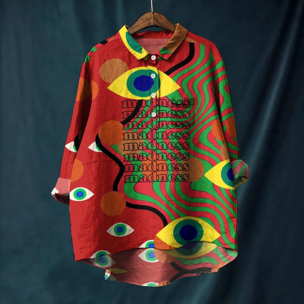 Women's Abstract Eye Stripes Printed Casual Long Sleeve Shirt