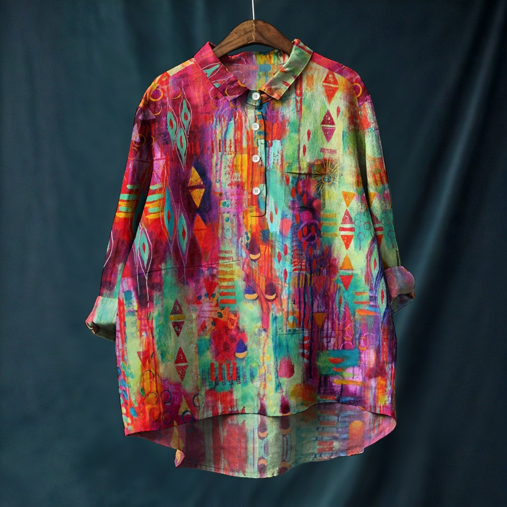 Women's Colorblock Art Printed Casual Shirt