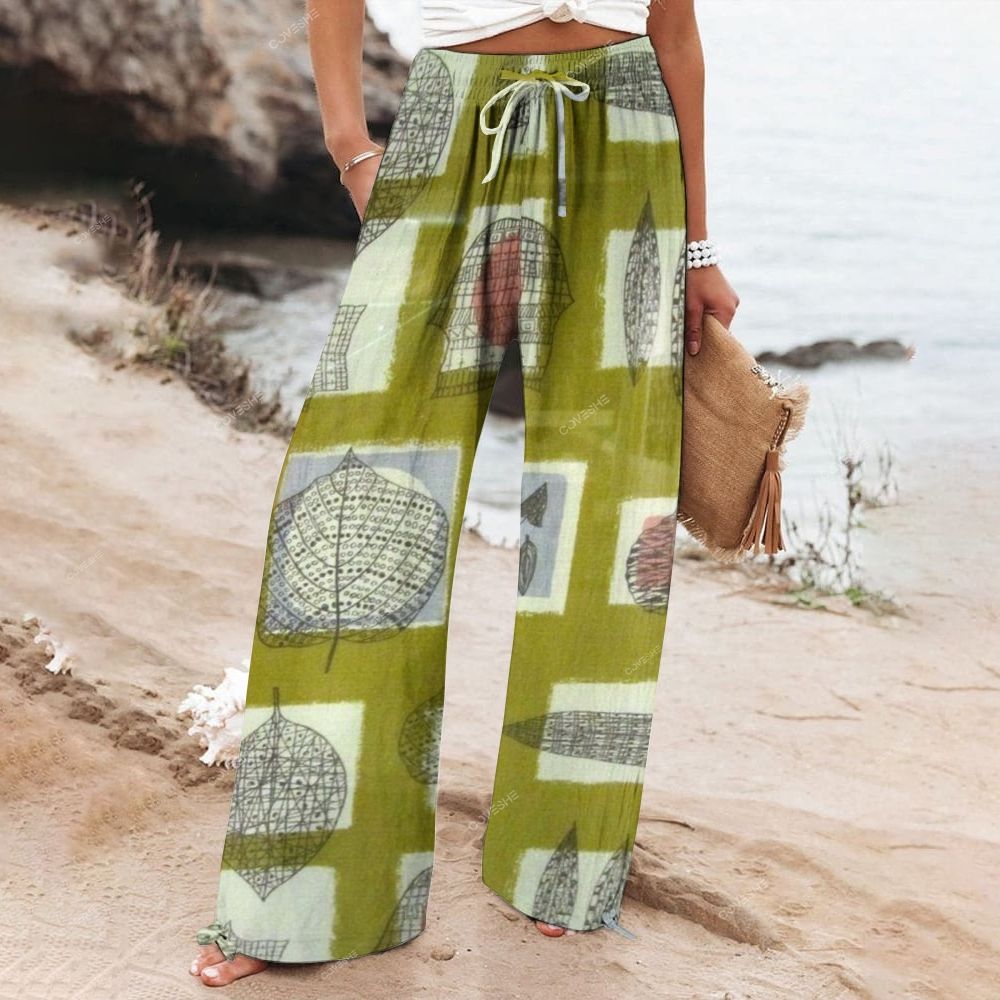 Women's Wide Leg Casual Artistic Geometric Leaves Printed Pants