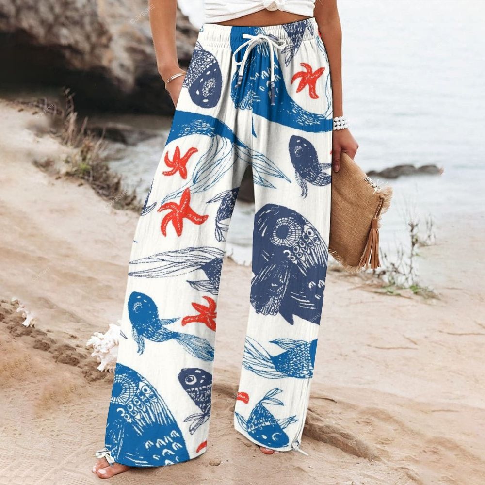Women's Wide Leg Casual Colorful Cartoon Fish Printed Pants