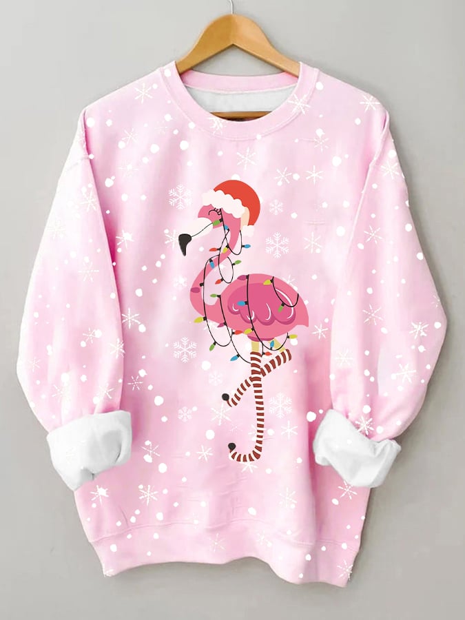 Women's Merry Christmas Flamingo Fun Print Casual Sweatshirt