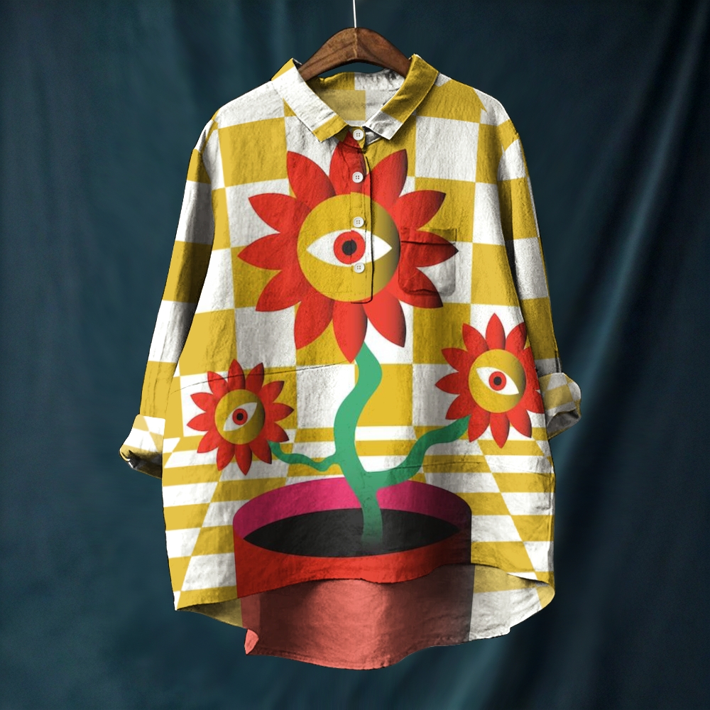 Women's Artistic Geometric Flower Eyes Printed Casual Long Sleeve Shirt