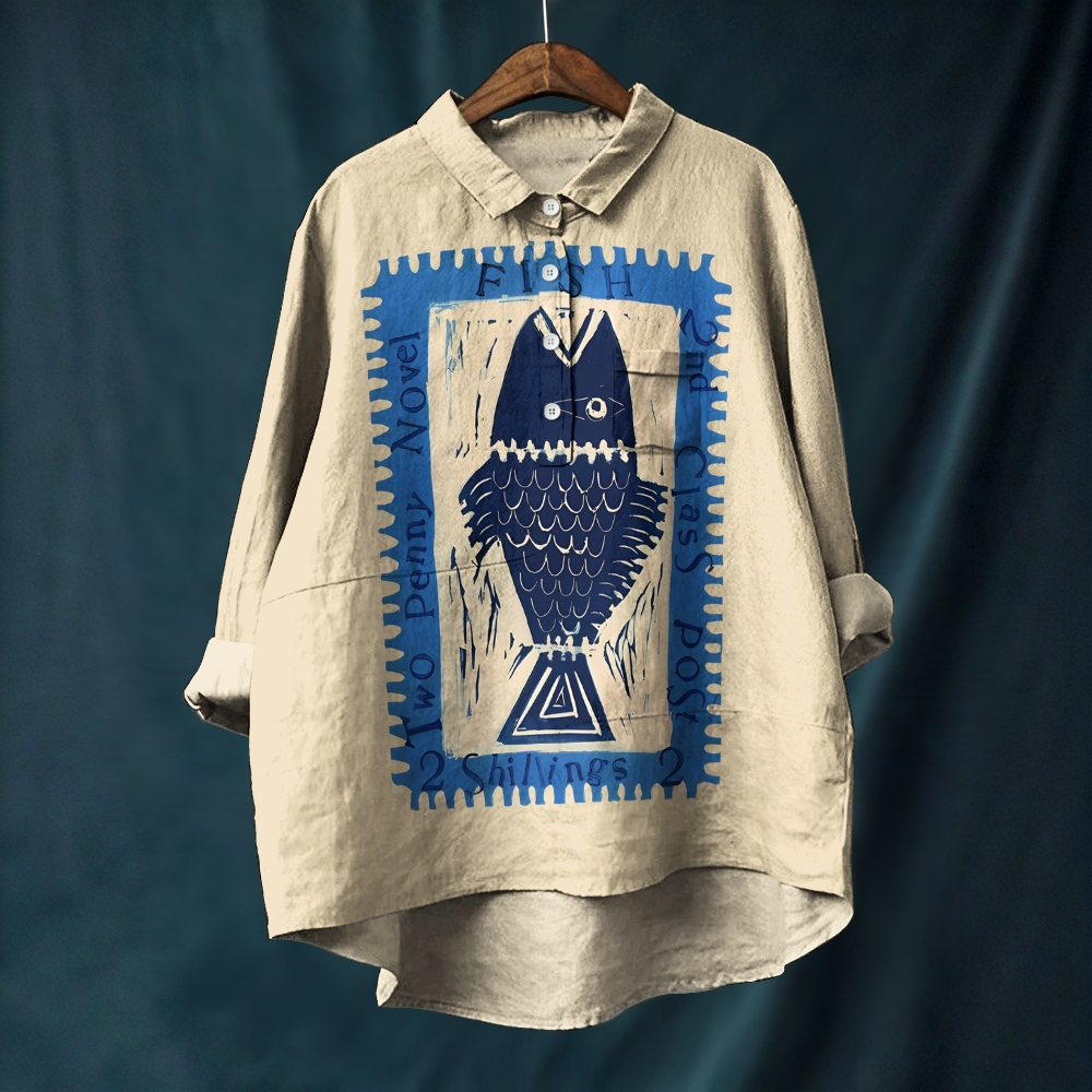 Women's Stamp Fish Printed Casual Long Sleeve Shirt