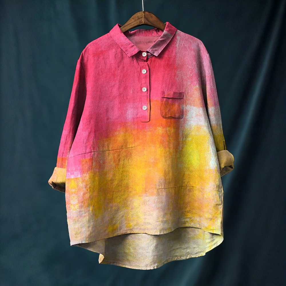Women's Pink Gradient Printed Casual Long Sleeve Shirt