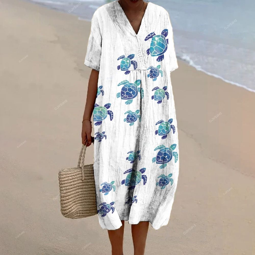 Women's Sea Turtle Printed Flowy Dress