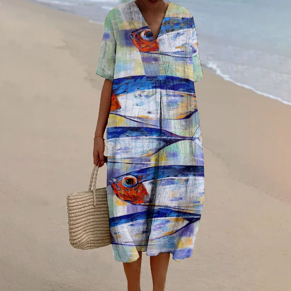Women's Fish Art Print Flowy Dress