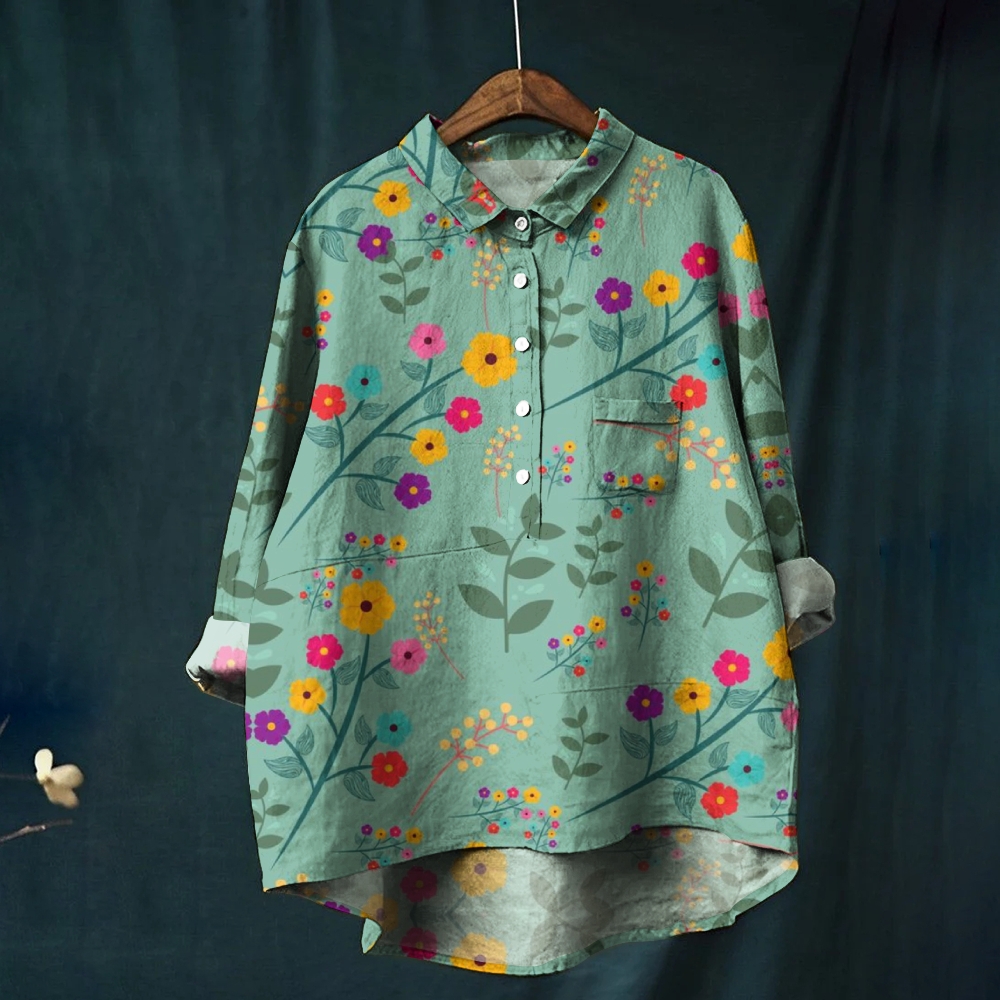 Women's Lovely Meadows Floral Pattern Printed Casual Shirt