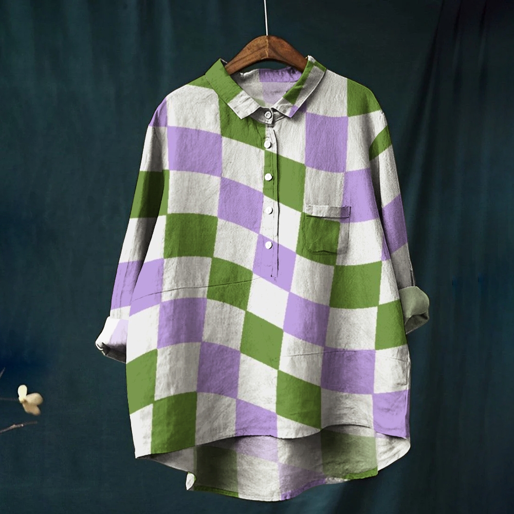 Women's Colorblock Plaid Printed Casual Shirt