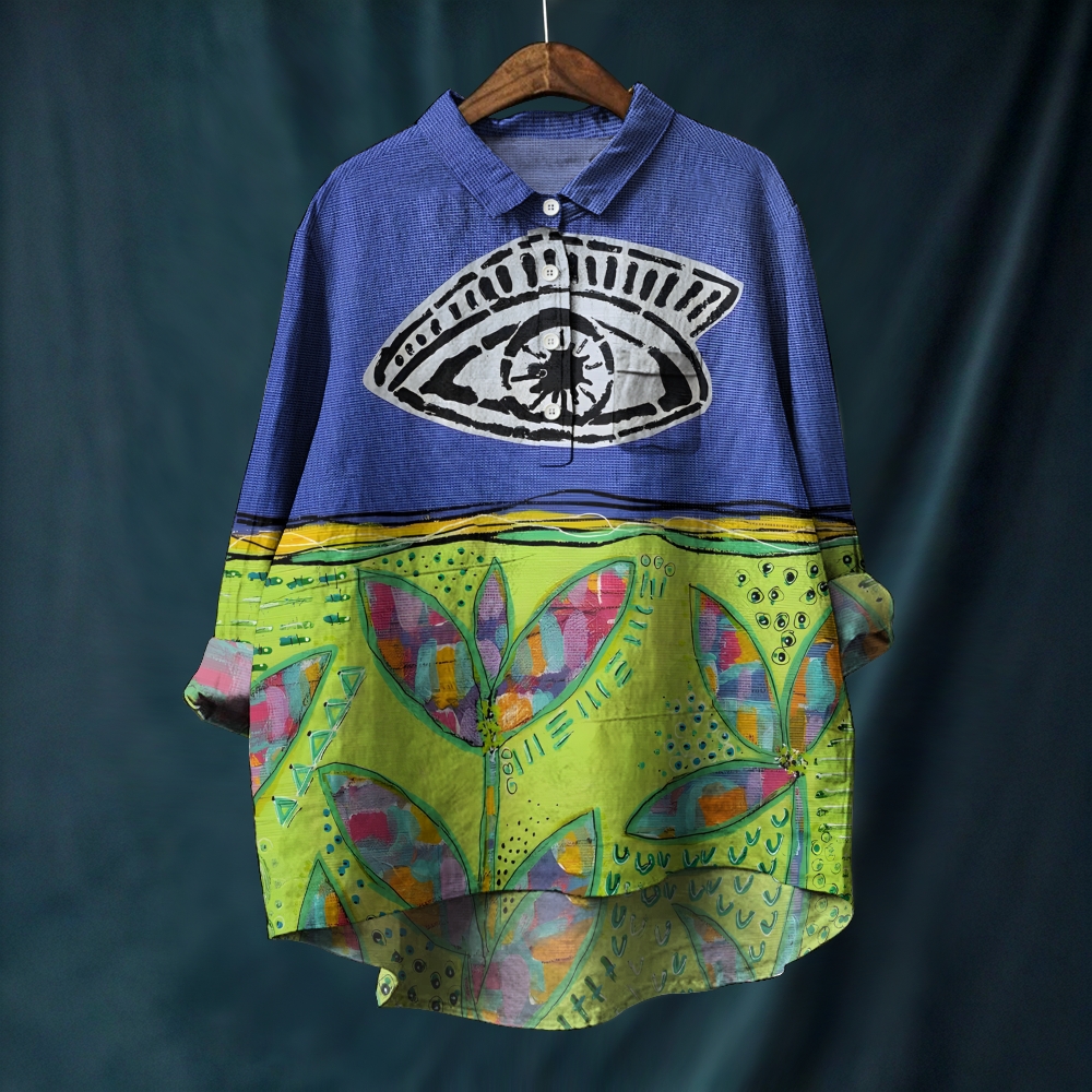 Women's Artistic Eyes And Flowers Printed Casual Long Sleeve Shirt