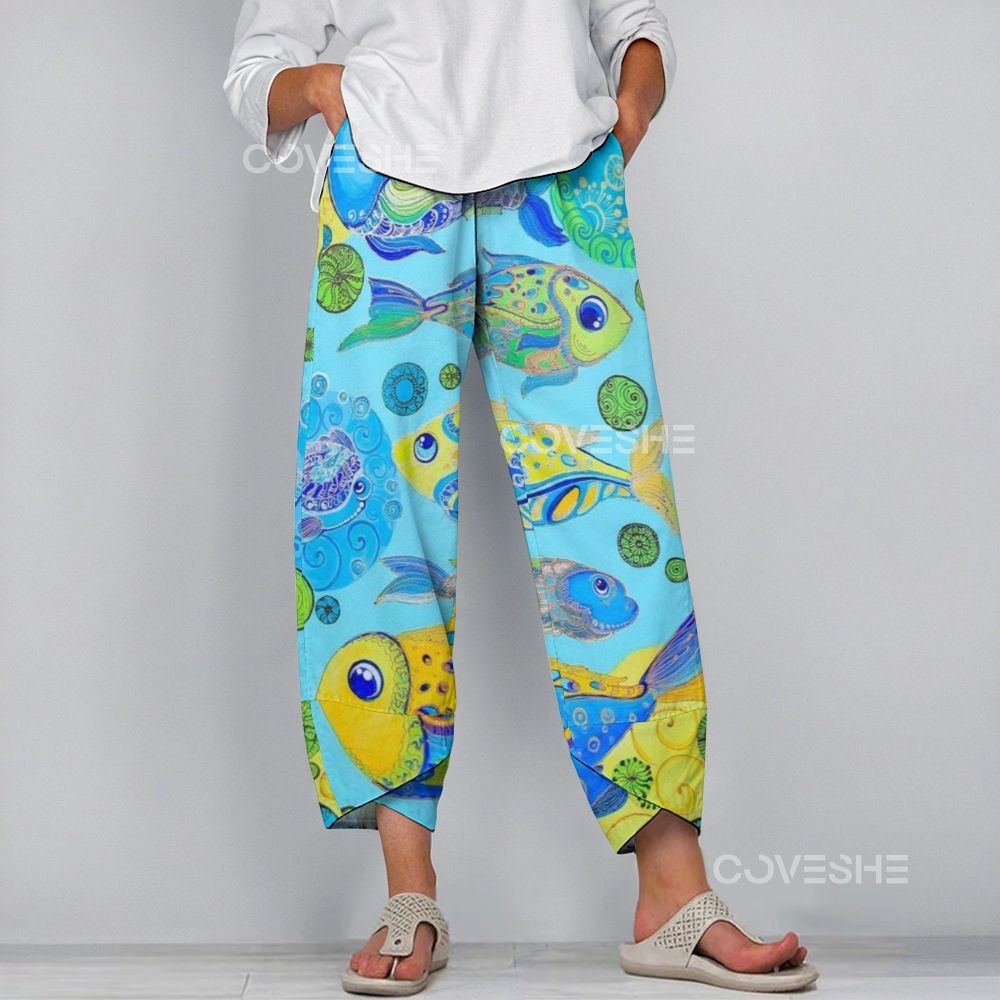 Women's Casual Colorful Cartoon Fish Printed Pants