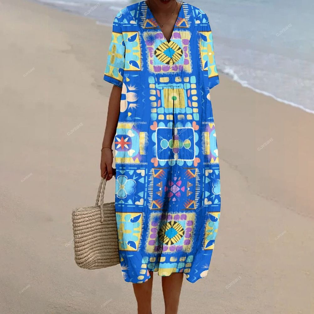 Women's Vintage Geometry Printed Flowy Dress