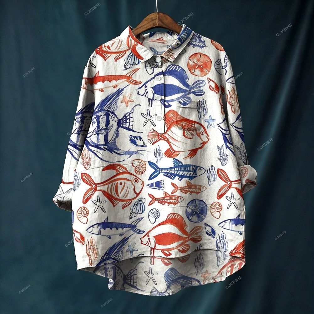 Women's Fink Fish Print Casual Shirt