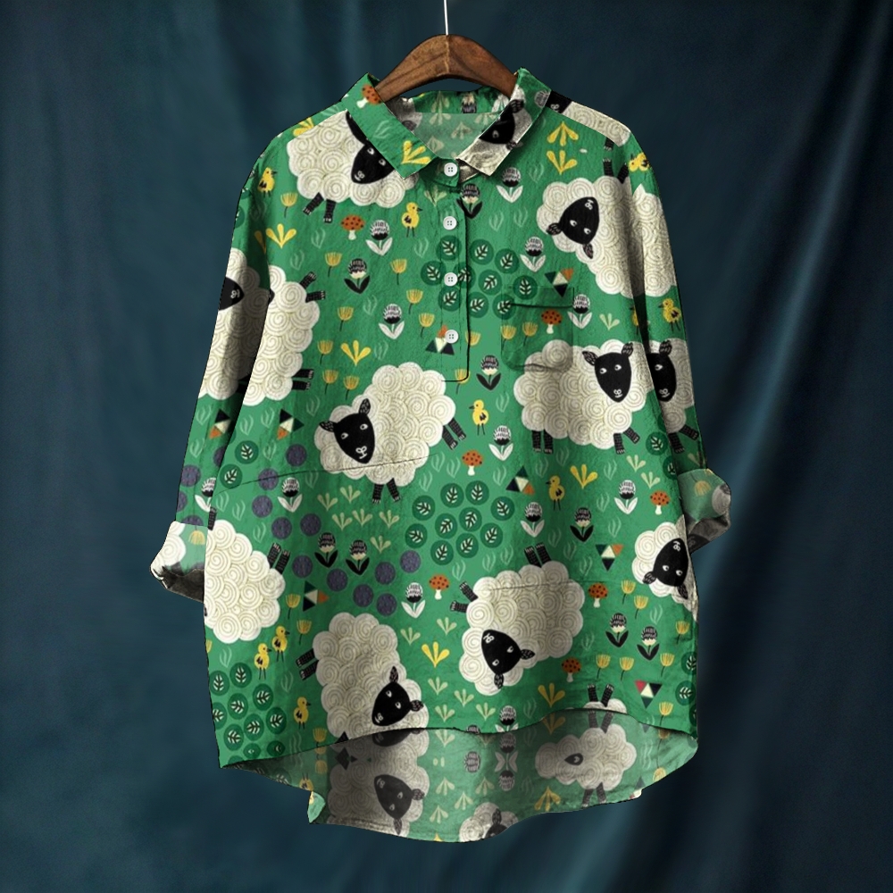 Women's Cartoon Lamb Printed Casual Long Sleeve Shirt
