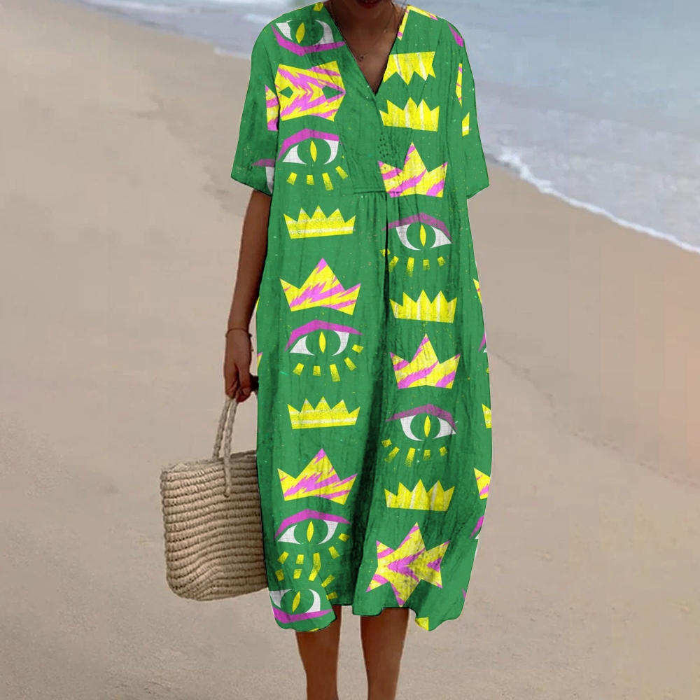 Women's Artistic Geometric Eyes Printed Flowy Dress