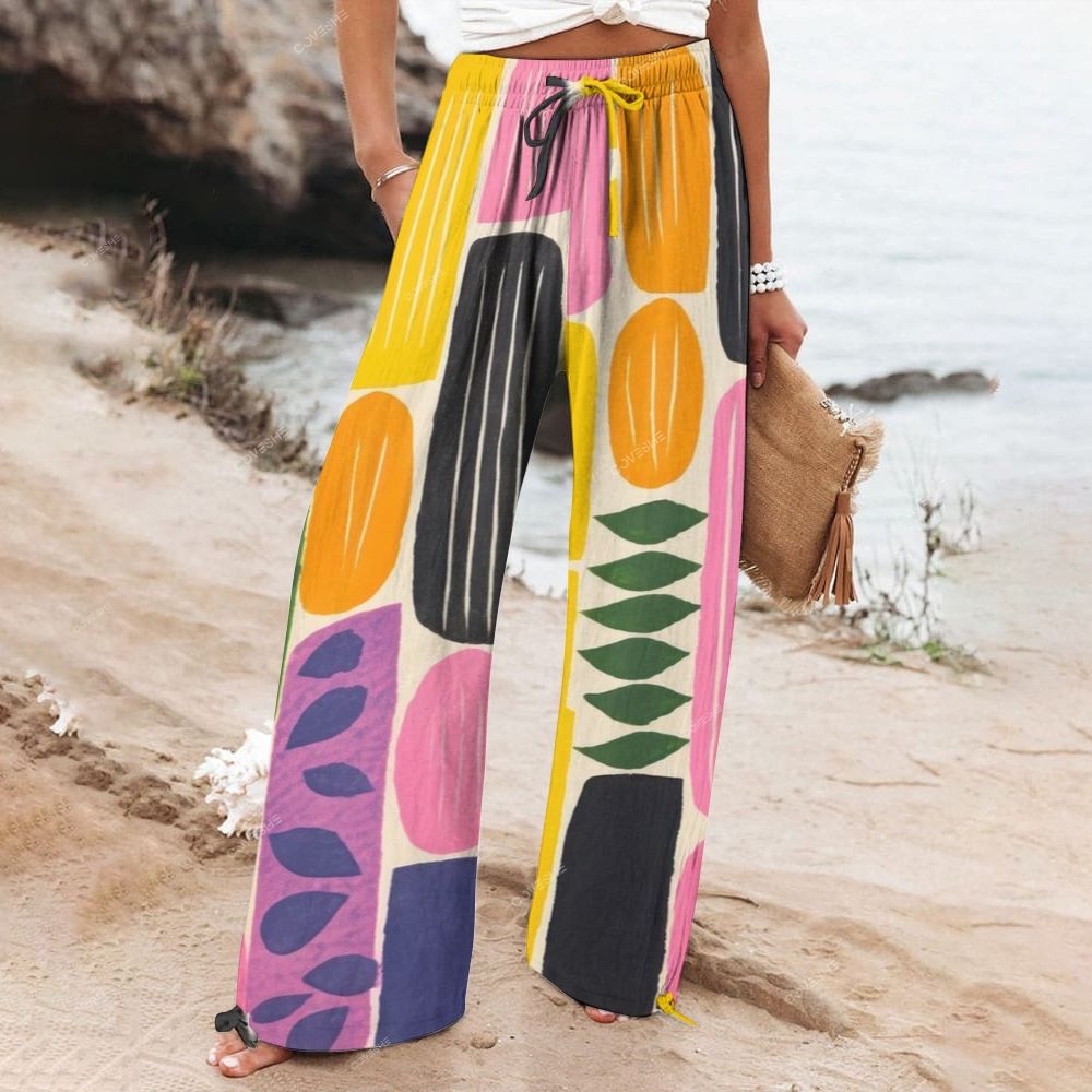 Women's Wide Leg Casual Colorful Geometry Printed Pants