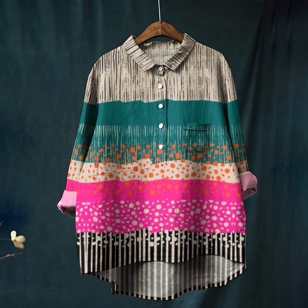 Women's Irregular Geometric Splicing Printed Casual Shirt