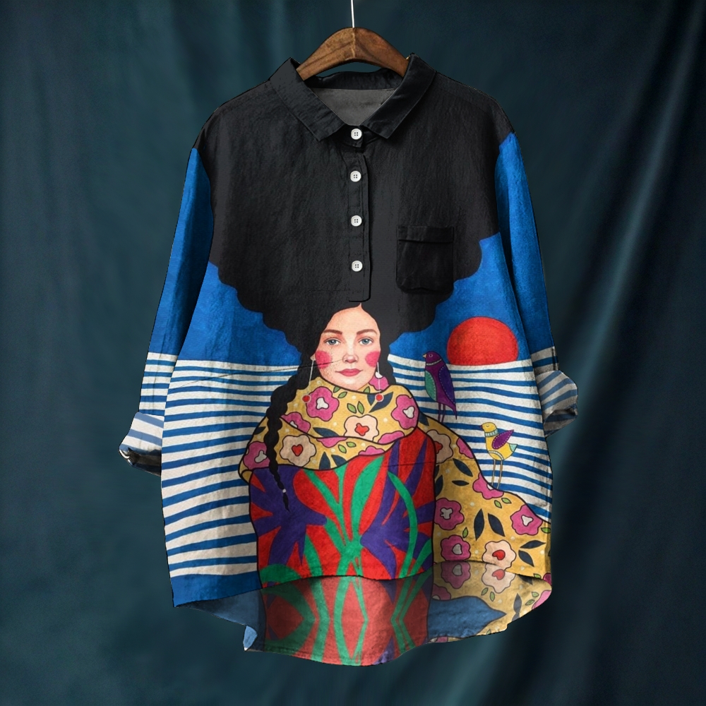 Women's Artistic Portrait Printed Casual Long Sleeve Shirt