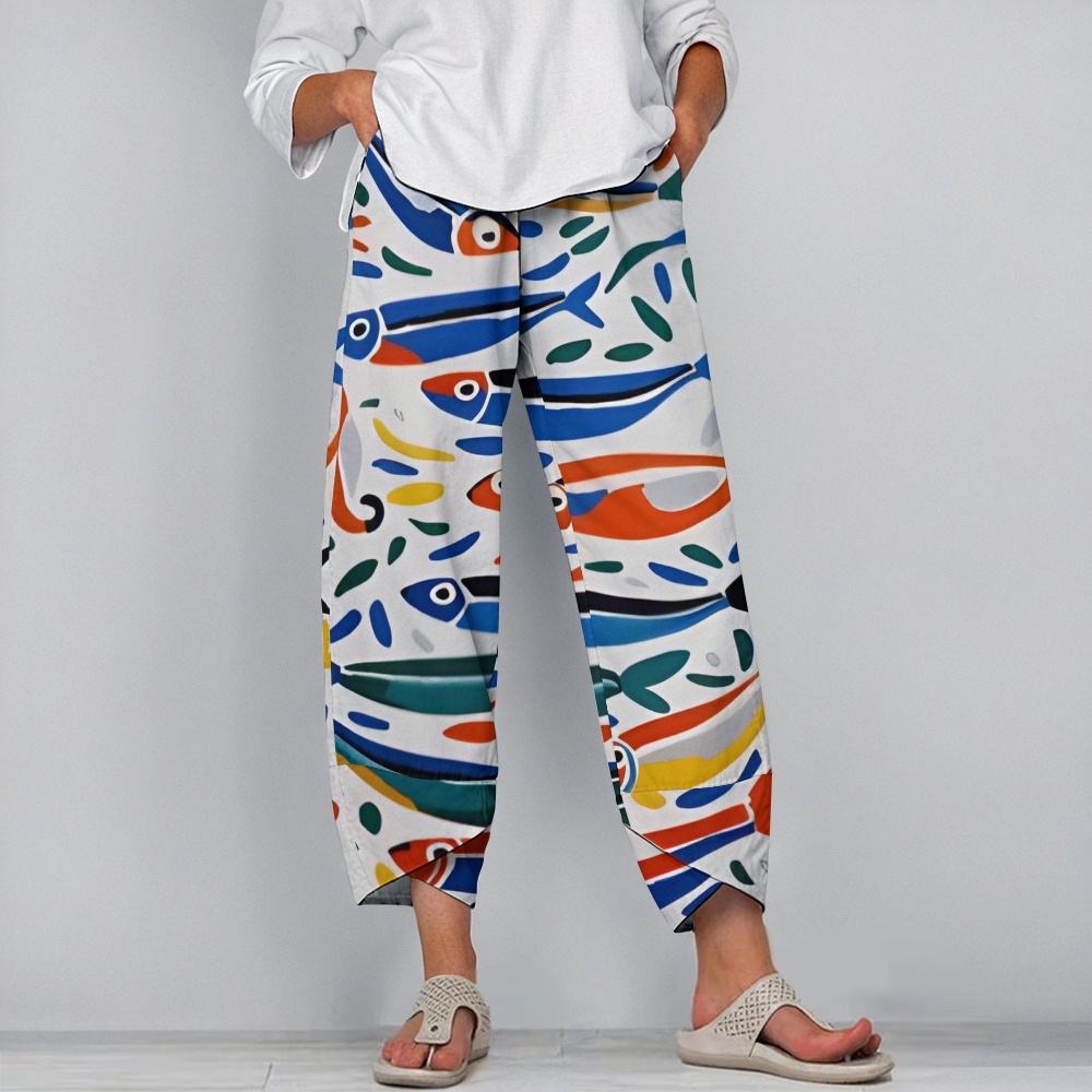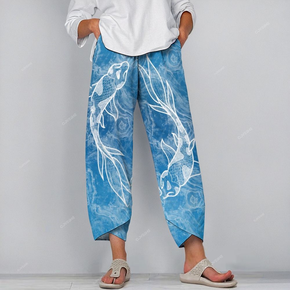 Women's Wide Leg Casual Colorful Fish Printed Pants
