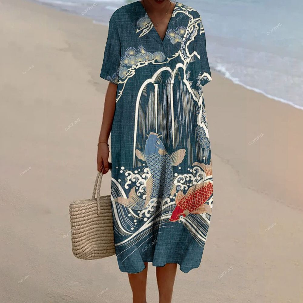 Women's Japanese Wave Fish Printed Casual Long Sleeve Shirt
