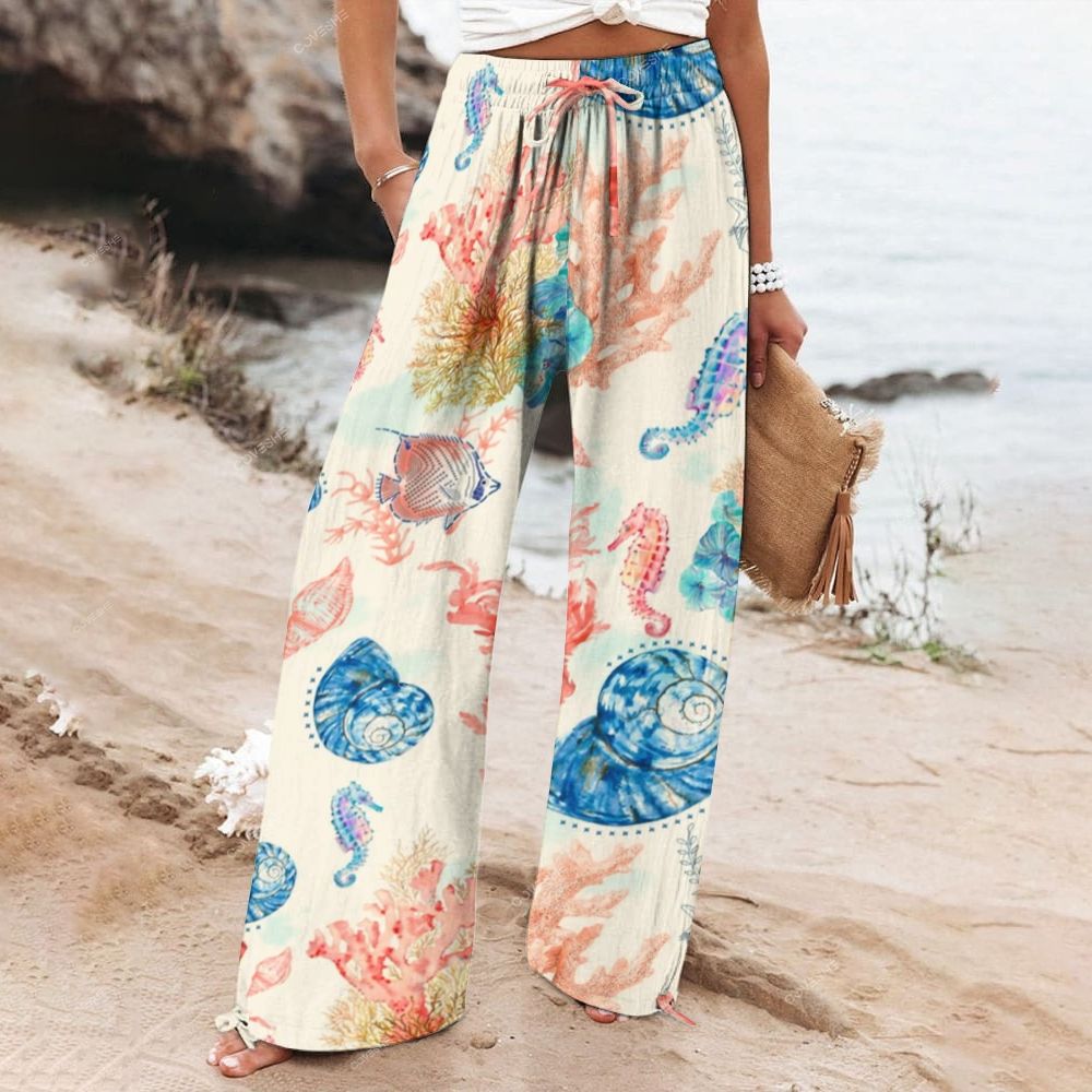 Women's Wide Leg Casual Coral Shell Printed Pants
