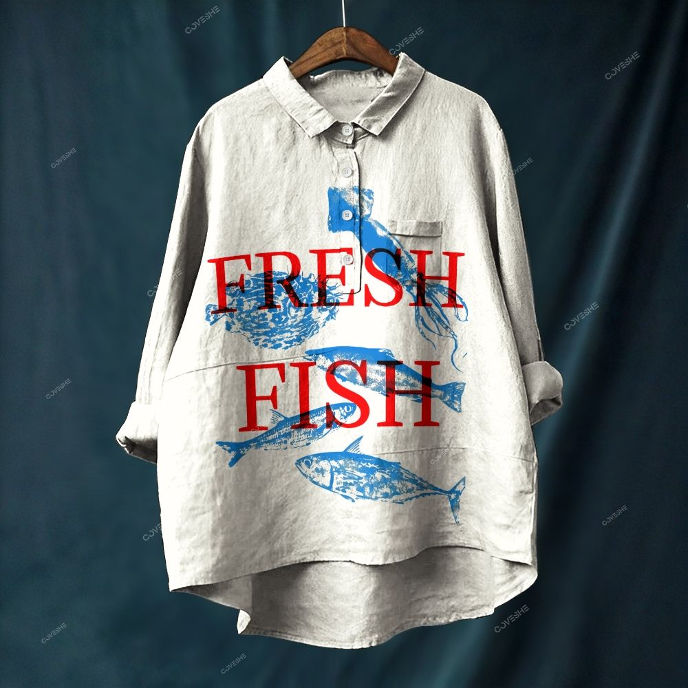 Women's Fresh Fish Printed Casual Long Sleeve Shirt