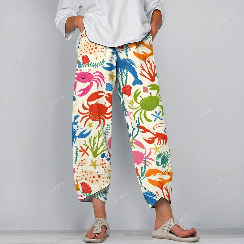 Women's Casual Colorful Cartoon Crab Lobster Printed Pants