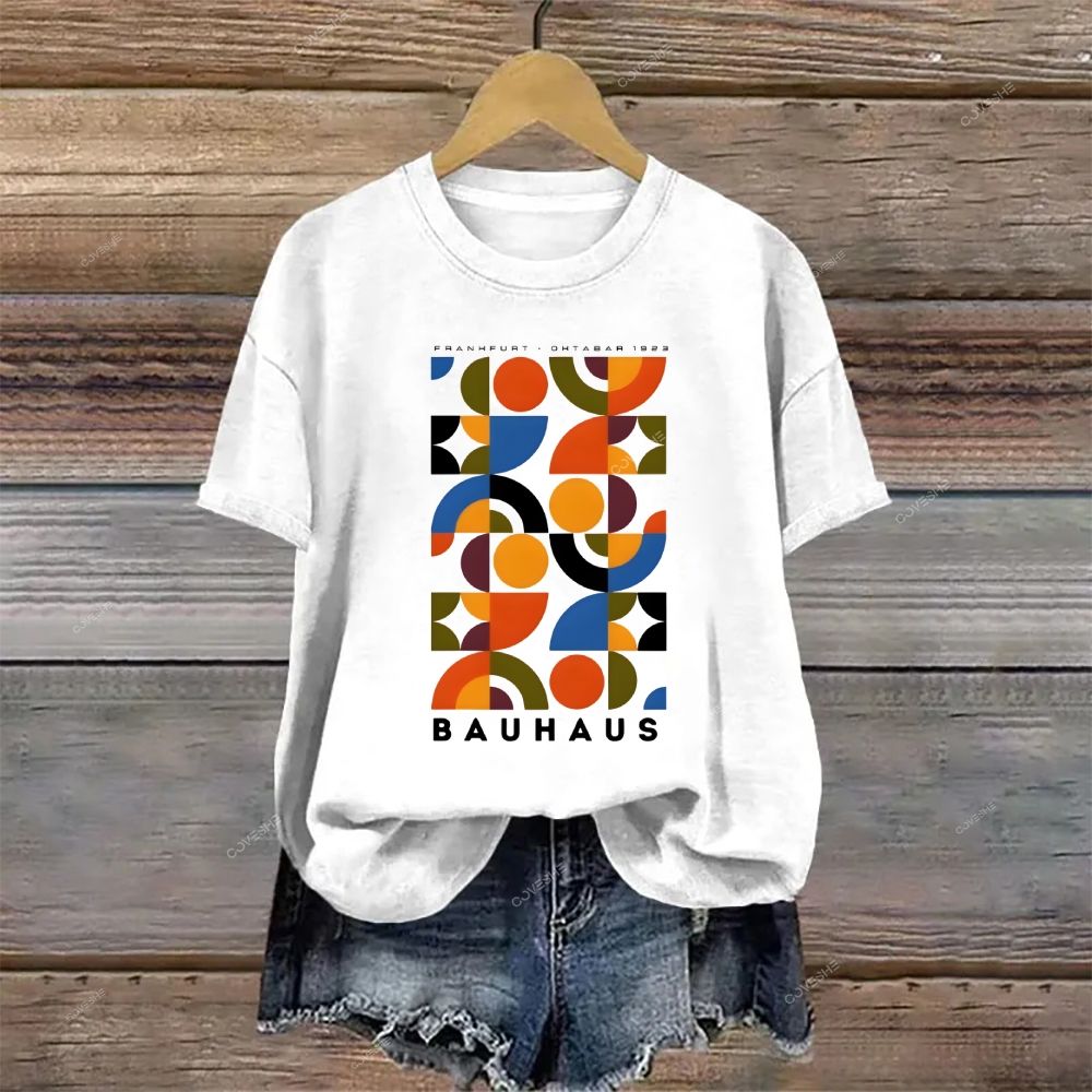 Crew Neck Colorful Geometric Printed Casual Cotton T-shirt