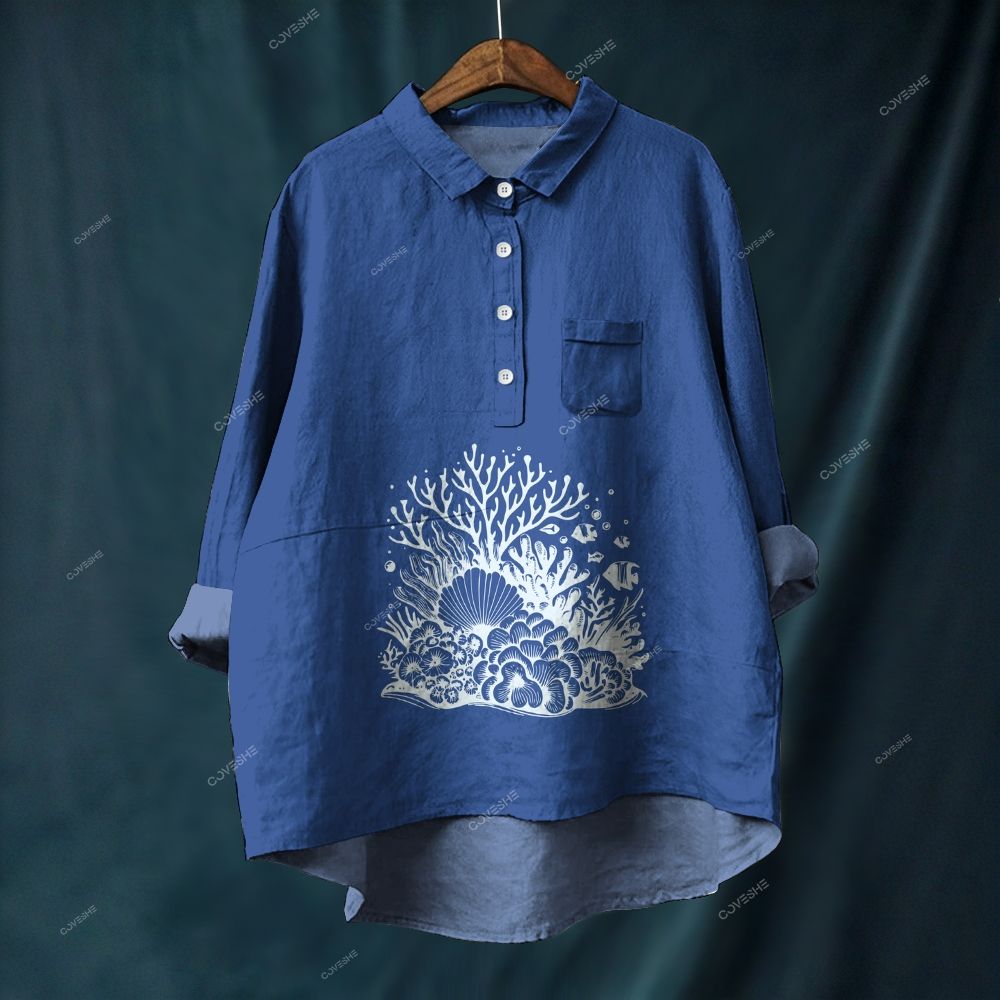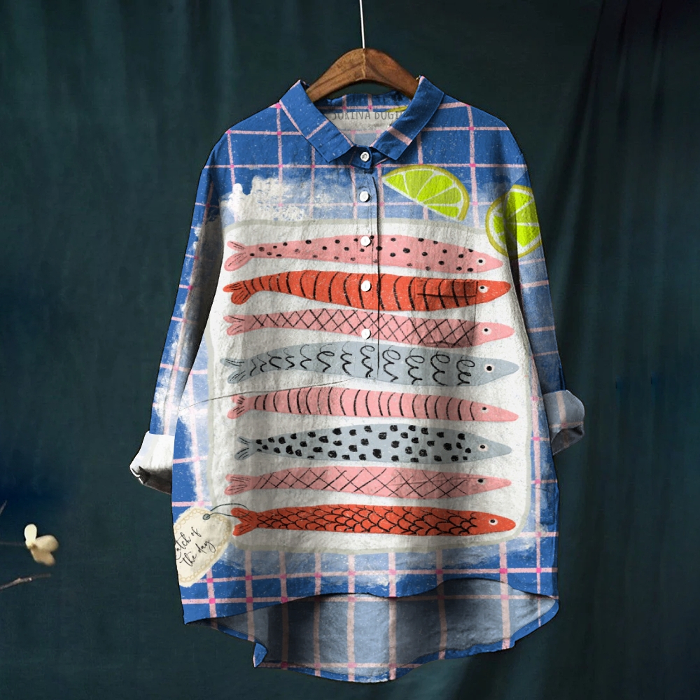 Women's Vintage Fish Print Casual Shirt