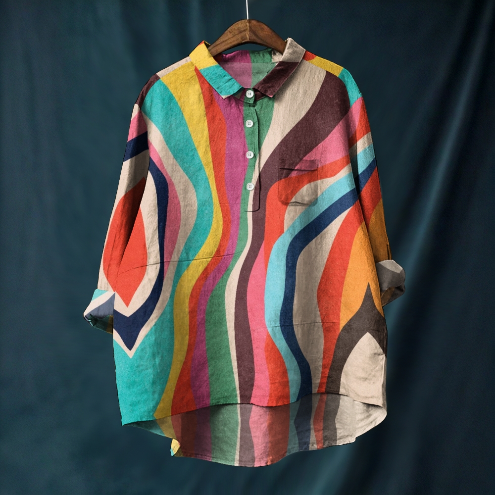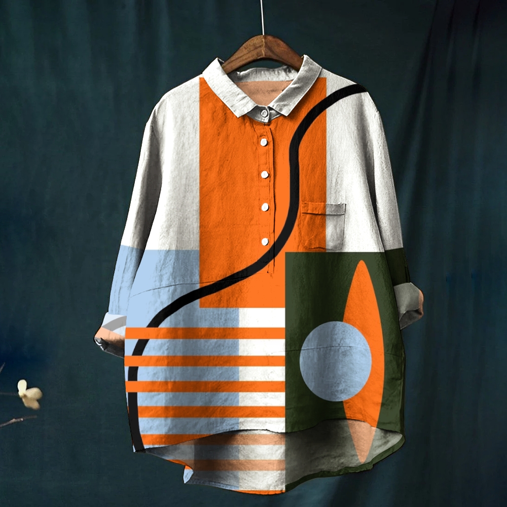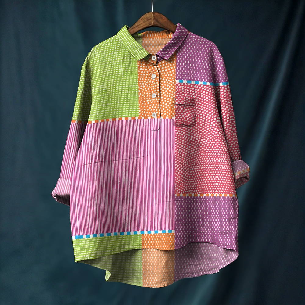 Women's Colorful Line Colorblock Printed Casual Long Sleeve Shirt