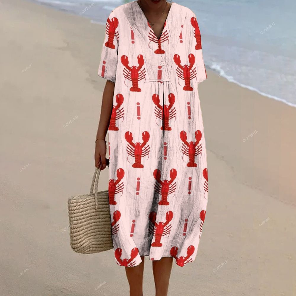 Women's Crayfish Printed Flowy Dress