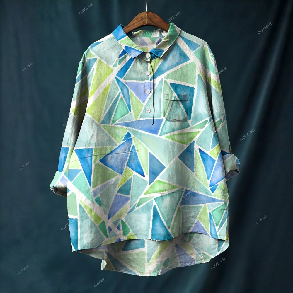 Women's Geometric Splicing Printed Casual Long Sleeve Shirt