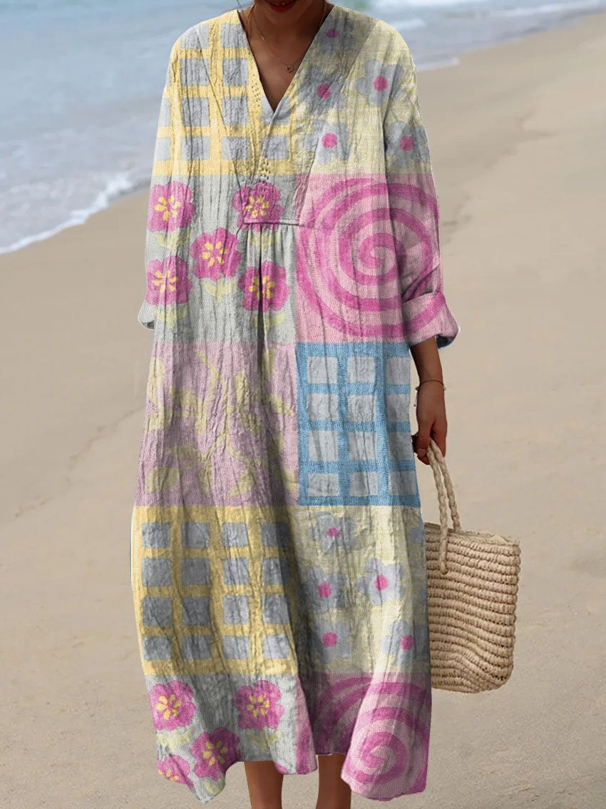 Women's Vintage Lovely Floral Art Print Flowy Dress