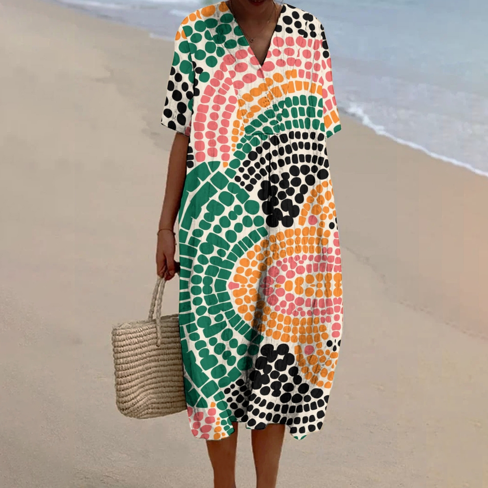 Women's Abstract Colorful Spots Printed Flowy Dress