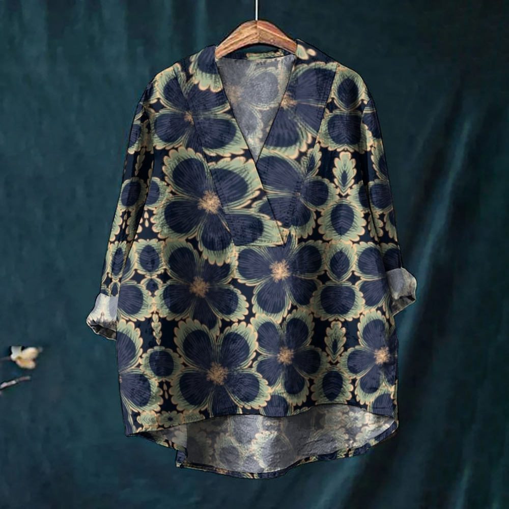 Women's Vintage Print Casual V-neck Shirt