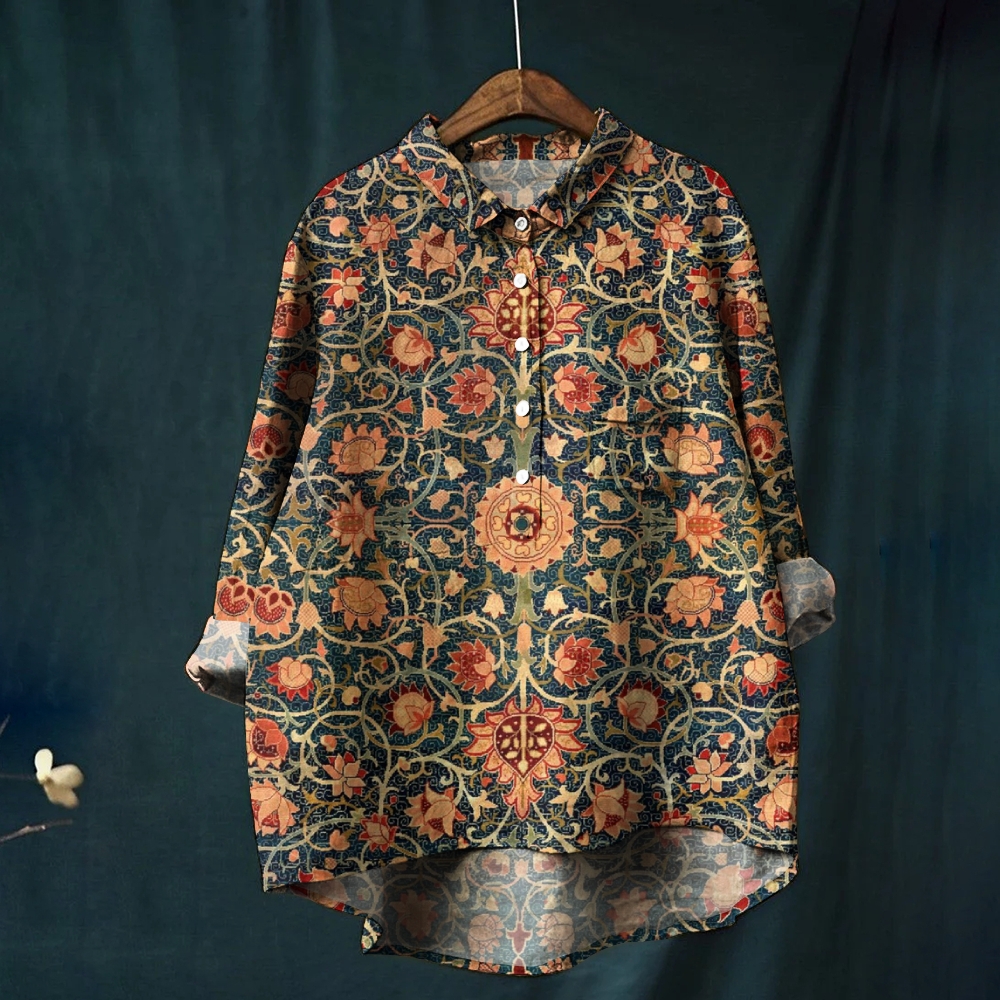 Women's Vintage Flower Leopard Printed Casual Shirt