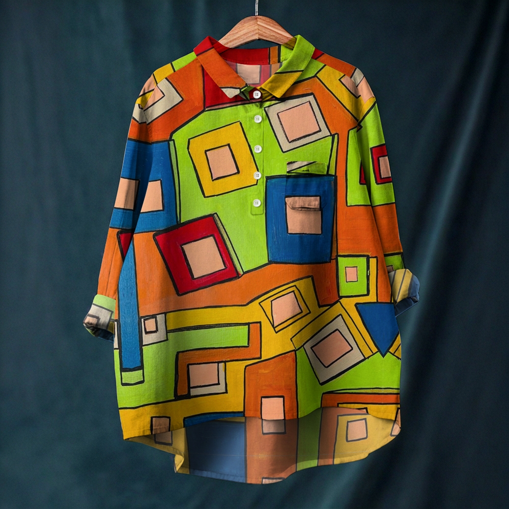 Women's Colorful Geometric Printed Long Sleeve Casual Shirt