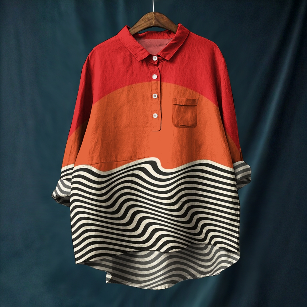 Women's Geometric Stripes Printed Casual Long Sleeve Shirt