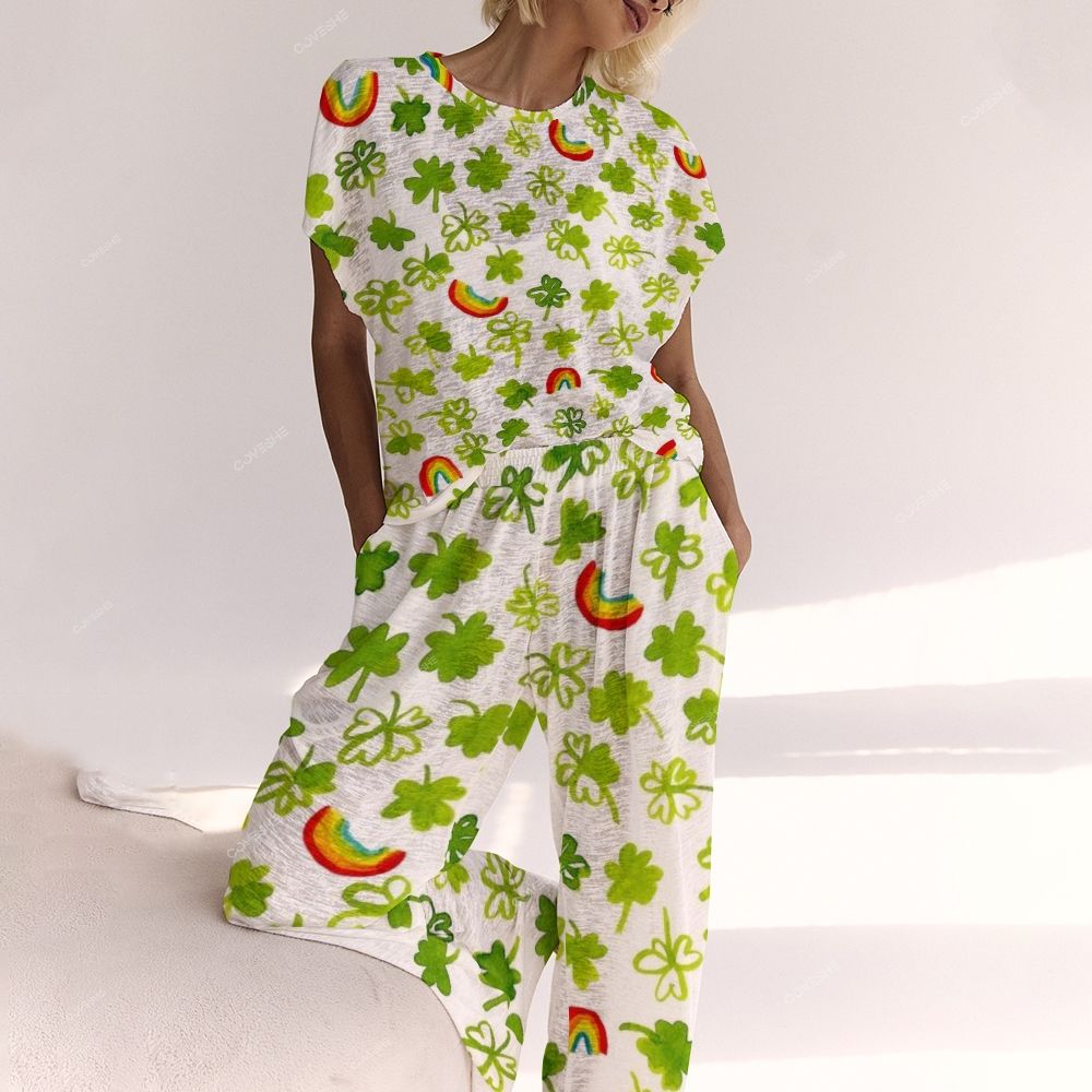 Ladies Rainbow Four Leaf Clover Printed Lounge Suit