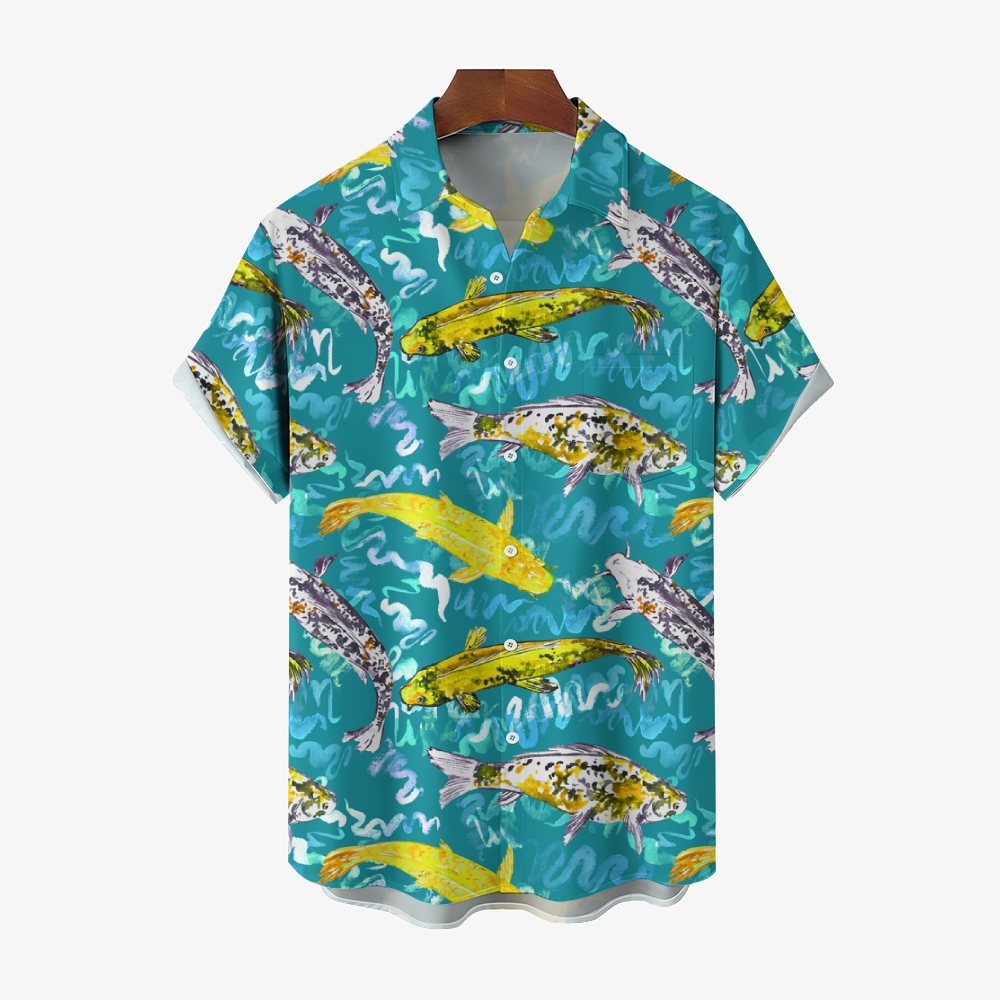Men's FIsh Print Hawaiian Casual Short Sleeve Shirt