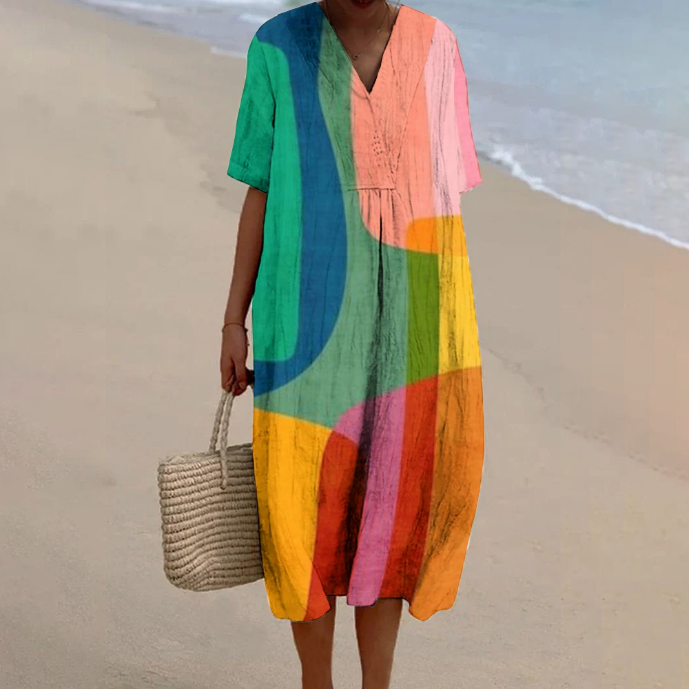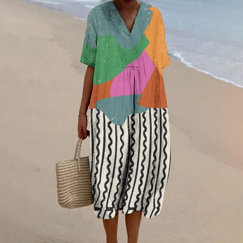 Women's Colorblock Printed Flowy Dress