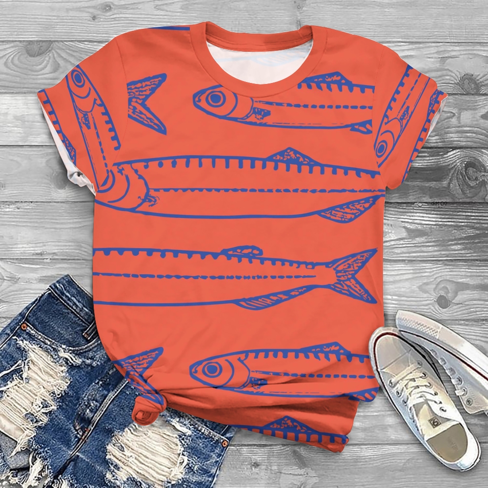 Women's Sardines Printed Round Neck T-Shirt